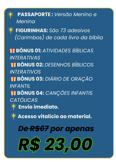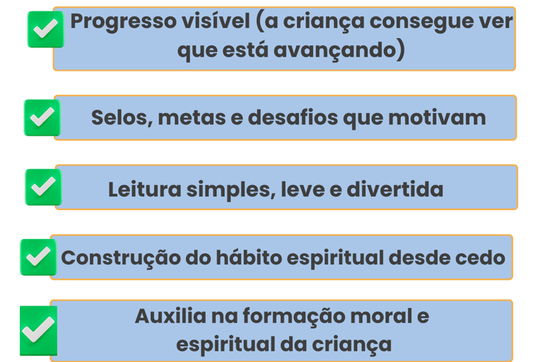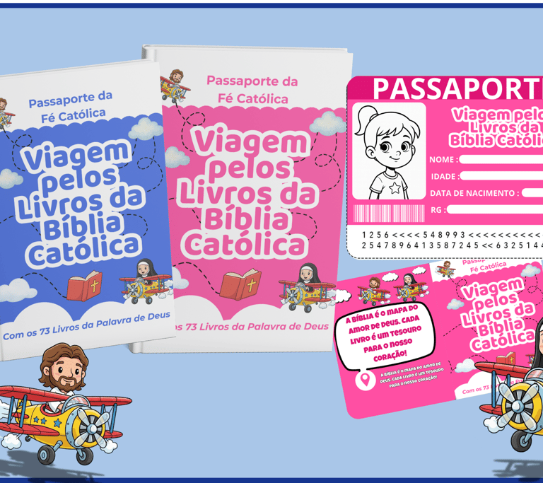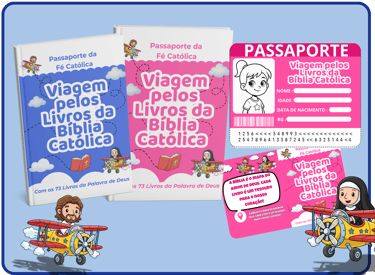 Com o Passaporte de Leitura Bíblica Católica, seu filho vai descobrir como é simples, divertido e especial caminhar com Deus todos os dias — de um jeito totalmente leve e envolvente.