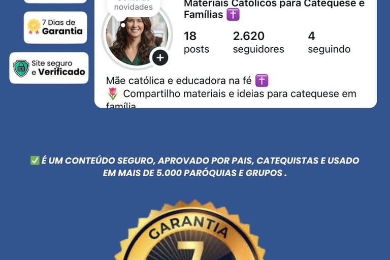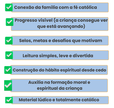 Seu filho vai se sentir parte de uma aventura católica — e você vai acompanhar de perto cada conquista espiritual.